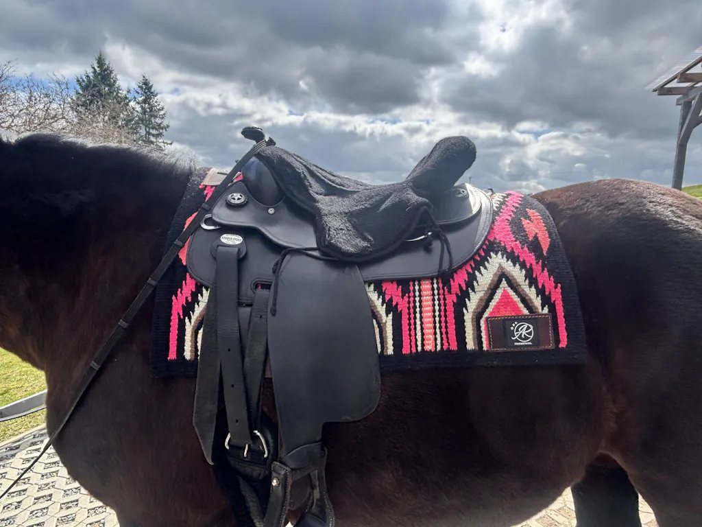 De pad ligt absoluut goed op zijn rug en het lijkt erop dat hij veel meer briest tijdens de bosritten. Maar of dat echt daaraan ligt weet ik natuurlijk niet. :-)